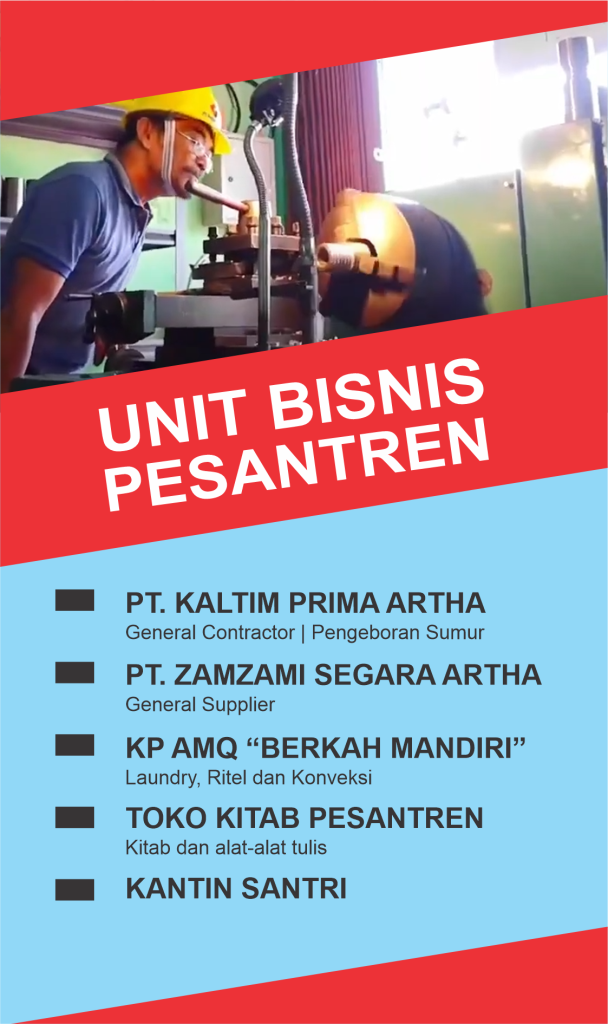 Ada PT. Kaltim Prima Artha yang bergerak di bidang kontraktor dan pemasok, CV. Zamzami Segara Artha yang fokus pada advertising dan supplier, serta Koperasi Syariah yang menyediakan segala kebutuhan santri di lingkungan pondok. Semua ini dikelola dengan profesional, berpijak pada prinsip ekonomi Islam, dan melibatkan SDM yang memiliki kompetensi, etos kerja, dan amanah.