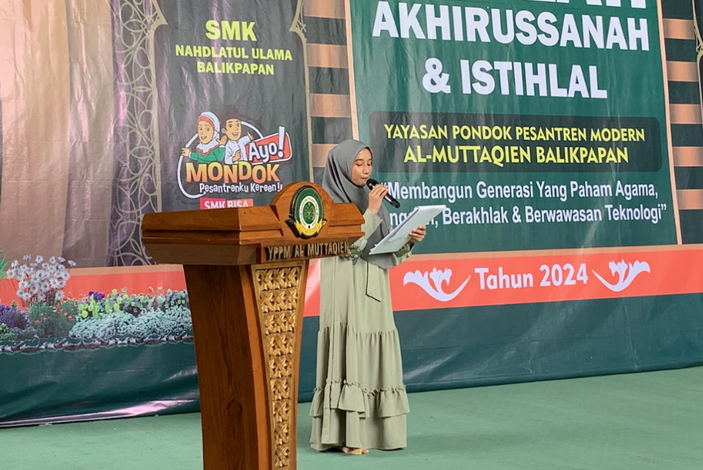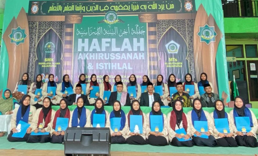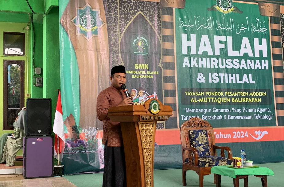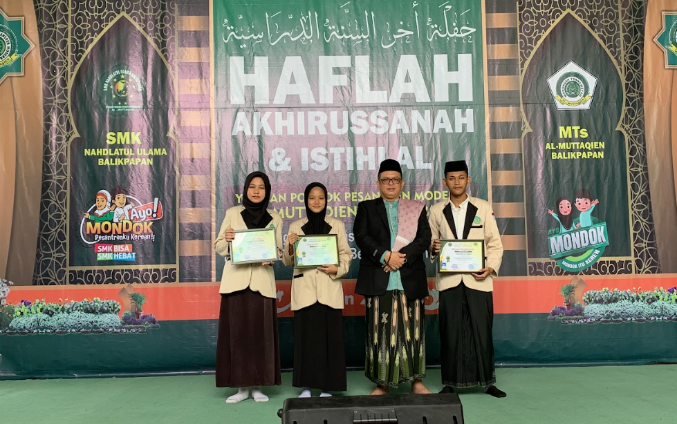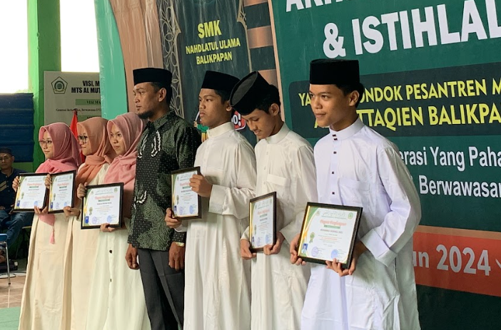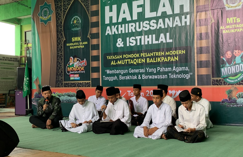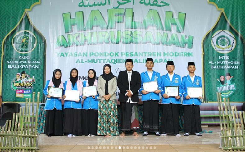 Pondok Pesantren Modern Al-Muttaqien Balikpapan sukses menyelenggarakan Haflah Akhirissanah 2024 sebagai puncak acara perpisahan dan kelulusan santri dari jenjang pendidikan formal MTs Al-Muttaqien dan SMK Nahdlatul Ulama Balikpapan. Kegiatan yang berlangsung khidmat dan meriah ini diikuti oleh para santri yang telah menyelesaikan masa belajarnya, serta dihadiri oleh seluruh pimpinan pesantren, wali santri, dan tamu undangan, 4 Mei 2024.