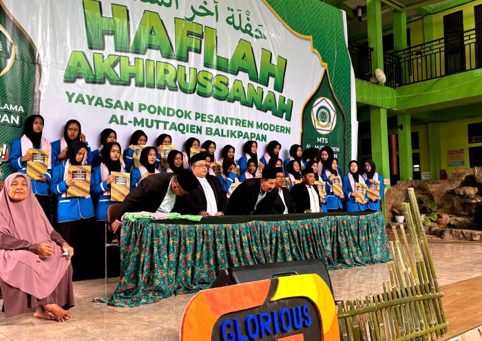 Haflah Akhirissanah Yayasan Pondok Pesantren Modern Al-Muttaqien Balikpapan Tahun 2025 sukses digelar dengan penuh khidmat dan lancar pada Sabtu, 17 Mei 2025 di Halaman Pesantren. Acara yang dihadiri oleh berbagai tokoh penting di Balikpapan ini, menjadi momen bersejarah bagi para santri yang lulus dari MTs Al-Muttaqien dan SMK Nahdlatul Ulama Balikpapan, yang telah menyelesaikan perjalanan pendidikan mereka di pesantren.