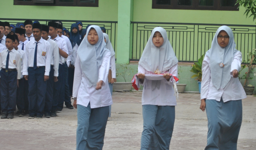 Para petugas upacara yang berasal dari kalangan santri pun tampak bersemangat menjalankan tugasnya. Gerakan mereka yang tegas dan penuh percaya diri menambah kekhidmatan jalannya prosesi. Wajah-wajah ceria menghiasi setiap barisan, mencerminkan kebanggaan sebagai santri sekaligus generasi penerus bangsa.