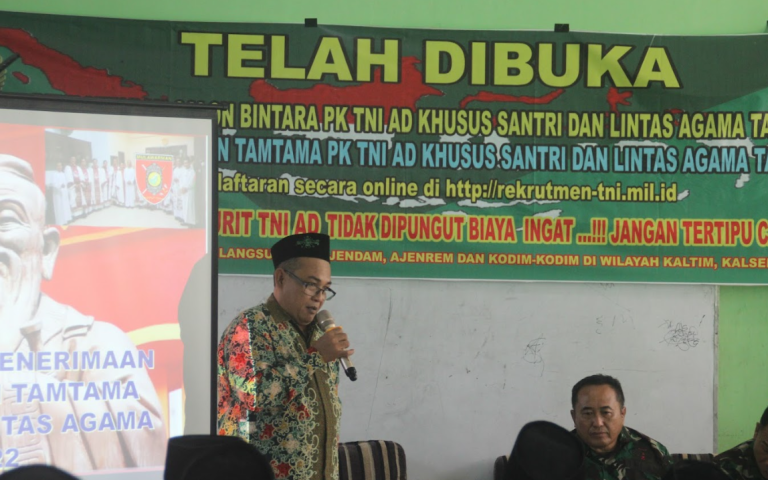 Pengasuh Pondok Pesantren Modern Al-Muttaqien Balikpapan, Ust. Imam Taufiq Sachrul, menyambut dengan hangat kedatangan anggota TNI Balikpapan untuk mengadakan sosialisasi pendaftaran masuk tentara kepada santri, khususnya kelas XII SMK Nahdlatul Ulama Balikpapan. Kegiatan ini bertujuan untuk memberikan informasi langsung mengenai pendaftaran Bintara dan Tamtama PK TNI AD, serta memberi kesempatan kepada santri yang tertarik untuk bergabung dengan Tentara Nasional Indonesia, 1 Agustus 2022.