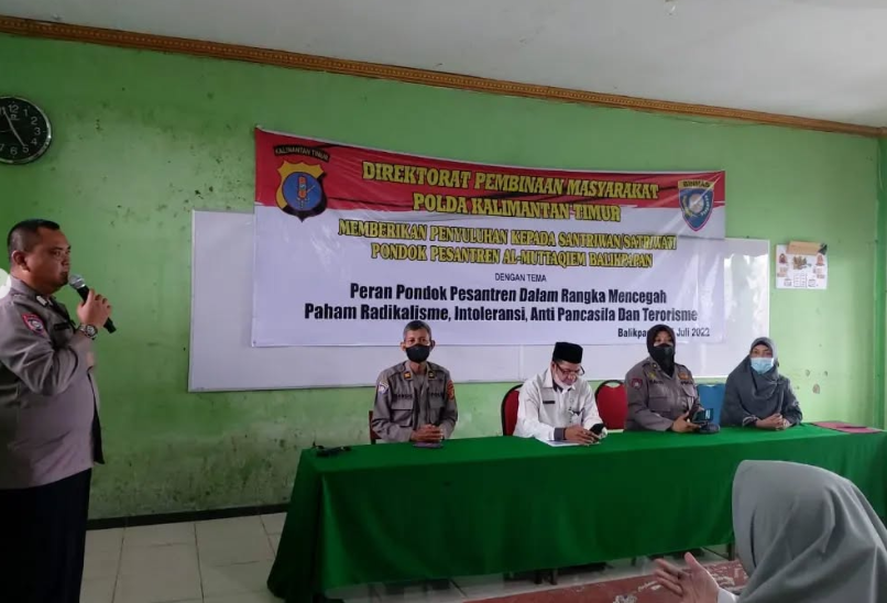 Direktorat Pembinaan Masyarakat POLDA Kalimantan Timur mengadakan penyuluhan dengan tema “Peran Pondok Pesantren dalam Mencegah Paham Radikalisme, Intoleransi, Anti Pancasila, dan Terorisme” di Pondok Pesantren Modern Al-Muttaqien Balikpapan. Kegiatan ini diikuti oleh santriwan dan santriwati, jenjang SMK Nahdlatul Ulama Balikpapan, dan dilaksanakan di Aula Pondok Pesantren Modern Al-Muttaqien Balikpapan, 25 Juli 2022.