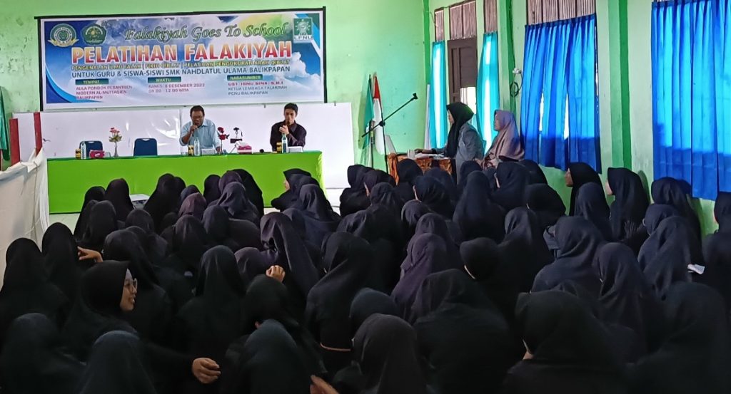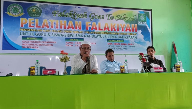 Aula Pondok Pesantren Modern Al-Muttaqien Balikpapan dipenuhi semangat para santri dan guru dalam kegiatan Pelatihan Falakiyah dengan tema “Pengenalan Ilmu Falak, Fikih Qiblat, dan Pelatihan Pengukuran Arah Kiblat”, Kamis, 8 Desember 2022.